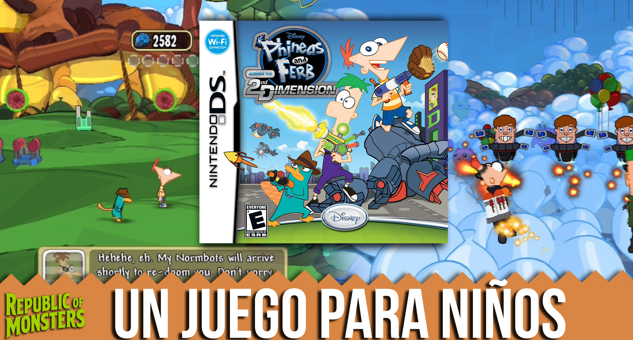 El juego también salió en Wii, PlayStation 3 y PSP, pero esas versiones son completamente diferentes (más similares a un beat ‘em up con más personajes desbloqueables como Isabella, Baljeet o Peter the Panda). La de DS es la única que se siente como un platformer clásico de handheld.